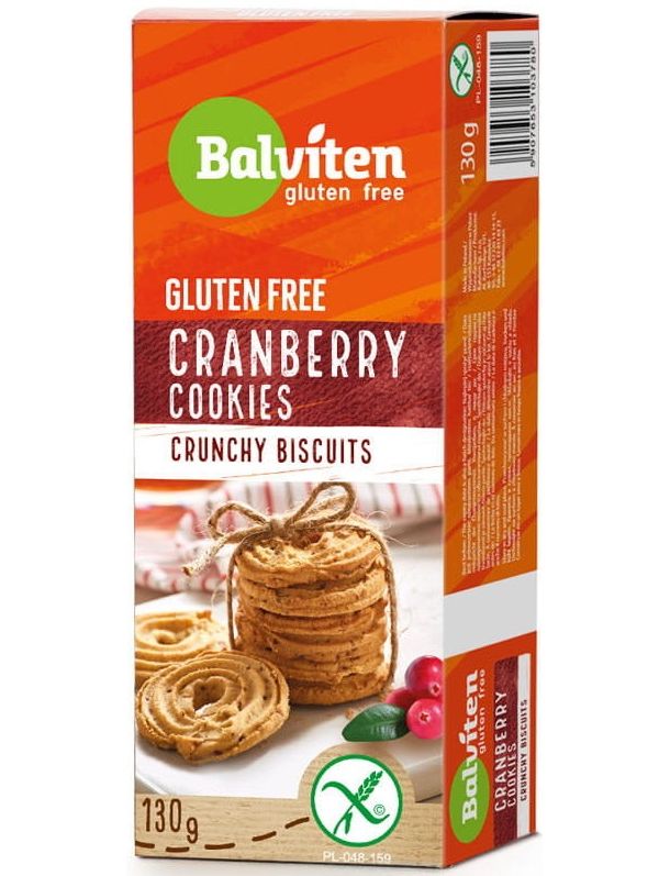 Склад: крохмаль кукурудзяний, рослинні олії: пальмова, ріпакова, пальмова частково гідрогенізована; кукурудзяне борошно, цукор, яйця, журавлина 7,5%, рисове борошно, картопляний крохмаль, сухе знежирене молоко, молочна начинка (цукор, повністю твердий пальмовий рослинний жир, сухе знежирене молоко, знежирене какао-порошок, лактоза (з молока), емульгатор: соєвий лецитин ; глюкозний сироп, ароматизатор: апельсиновий ароматизатор, розпушувач: бікарбонат амонію.