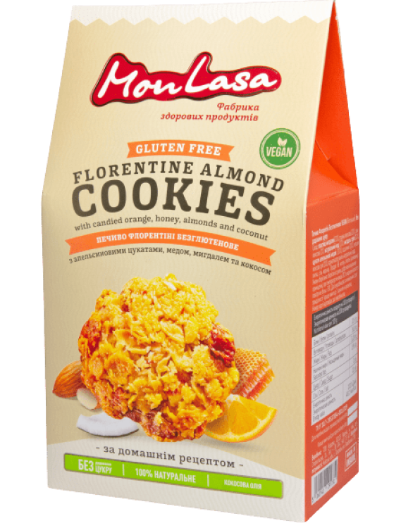 Неймовірно смачне безглютенове печиво Флорентіні з карамелізованими апельсиновими цукатами, медом, кокосом та мигдалем.