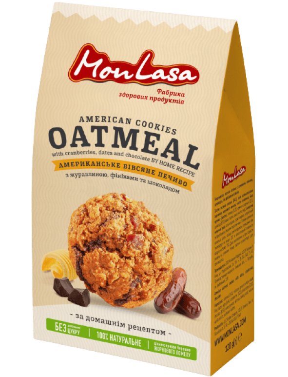 Поживне та корисне печиво з цільнозернових злаків на вершковому маслі з додаванням журавлини, фініків та шоколаду.