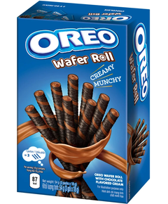 Склад: цукор, пшеничне борошно, пальмова олія, какао-порошок, мальтодекстрин, сироп фруктози-глюкози, крохмаль кукурудзяний, сіль, ароматизатори, емульгатор (лецитини (СОЯ)).  Oreo у форматі трубки. З Oreo Wafer Roll Chocolate ви можете насолодитися популярним подвійним печивом зовсім...