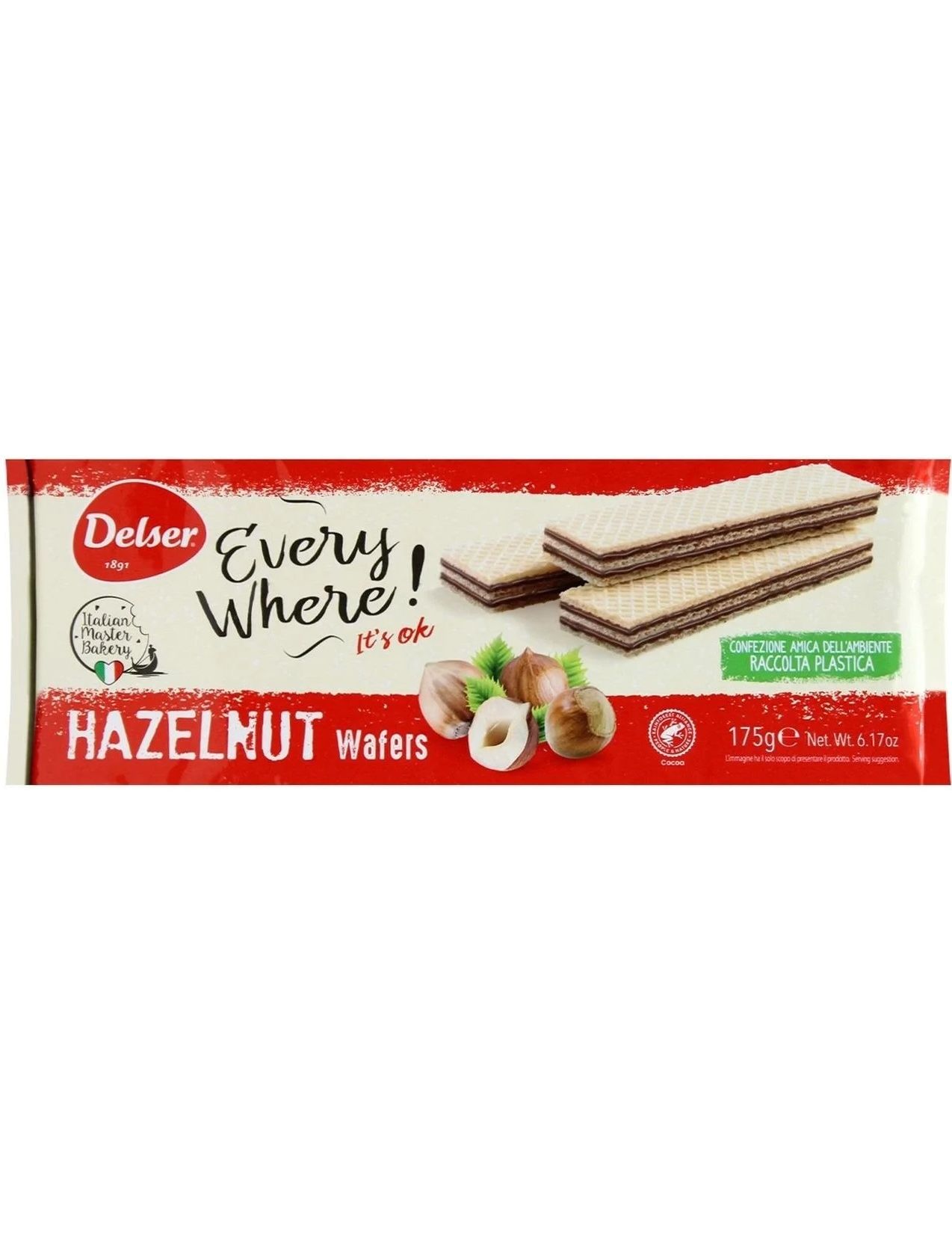 Склад: кремова начинка - 75%, пшеничне борошно, кокосова олія, пшеничний крохмаль, цукор, декстроза, фундук (7% у кремовій начинці), знежирене сухе молоко, суха молочна сироватка, знежирене какао, соєве борошно, емульгатор: соєвий лецитин, сіль, розпушувач: гідрокарбонат натрію, натуральний ароматизатор.