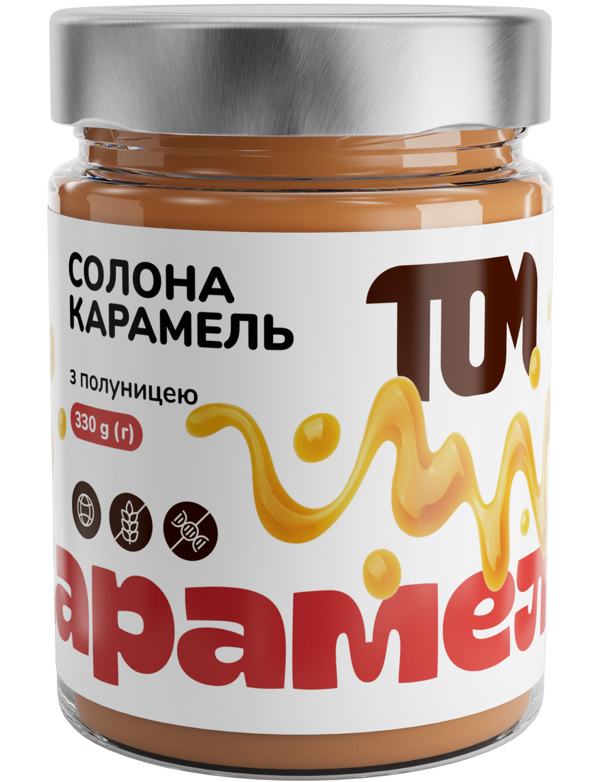 Склад: вершки тваринні 33%, цукор, масло вершкове концентроване 99,8%, сироп з полуниці, сіль рожева, імбир 2%.