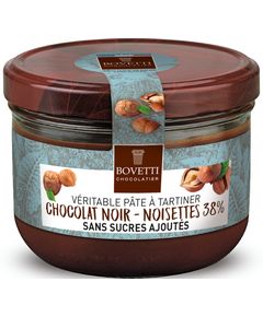 Склад: фундук 40%, темний шоколад 73% какао, цукор, рапсова олія. Створена справжнім майстром шоколаду, ця паста пожвавить ваші сніданки, закуски, млинці... У будь-якій нагоді буде добре опустити чайну ложку в його вишукану баночку 350 г. Зроблено з виняткових продуктів відомим майстром...