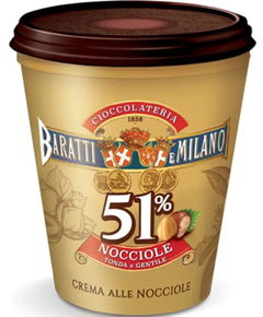 Склад: фундук (51%), цукор, знежирене какао (7%), сухе знежирене молоко, какао-масло, емульгатор: соєвий лецитин. Без глютену. Крем Baratti Hazelnut Cream — це відчуття чистої та оксамитової інтенсивності завдяки високому вмісту лісових горіхів (51%), що підсилює його багатий та...