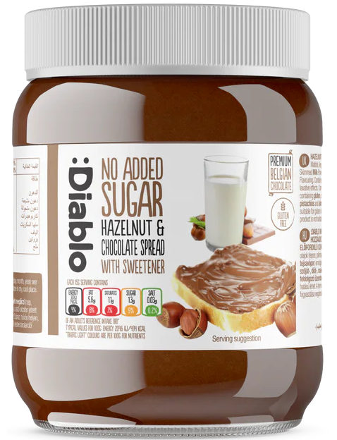 Склад: мальтит, рослинна олія (ріпакова, пальмова), фундук 13%, какао зі зниженим вмістом жиру, сухе знежирене молоко 7%, суха молочна сироватка (молоко), емульгатор 0,5% (соняшниковий лецитин), ароматизатор.