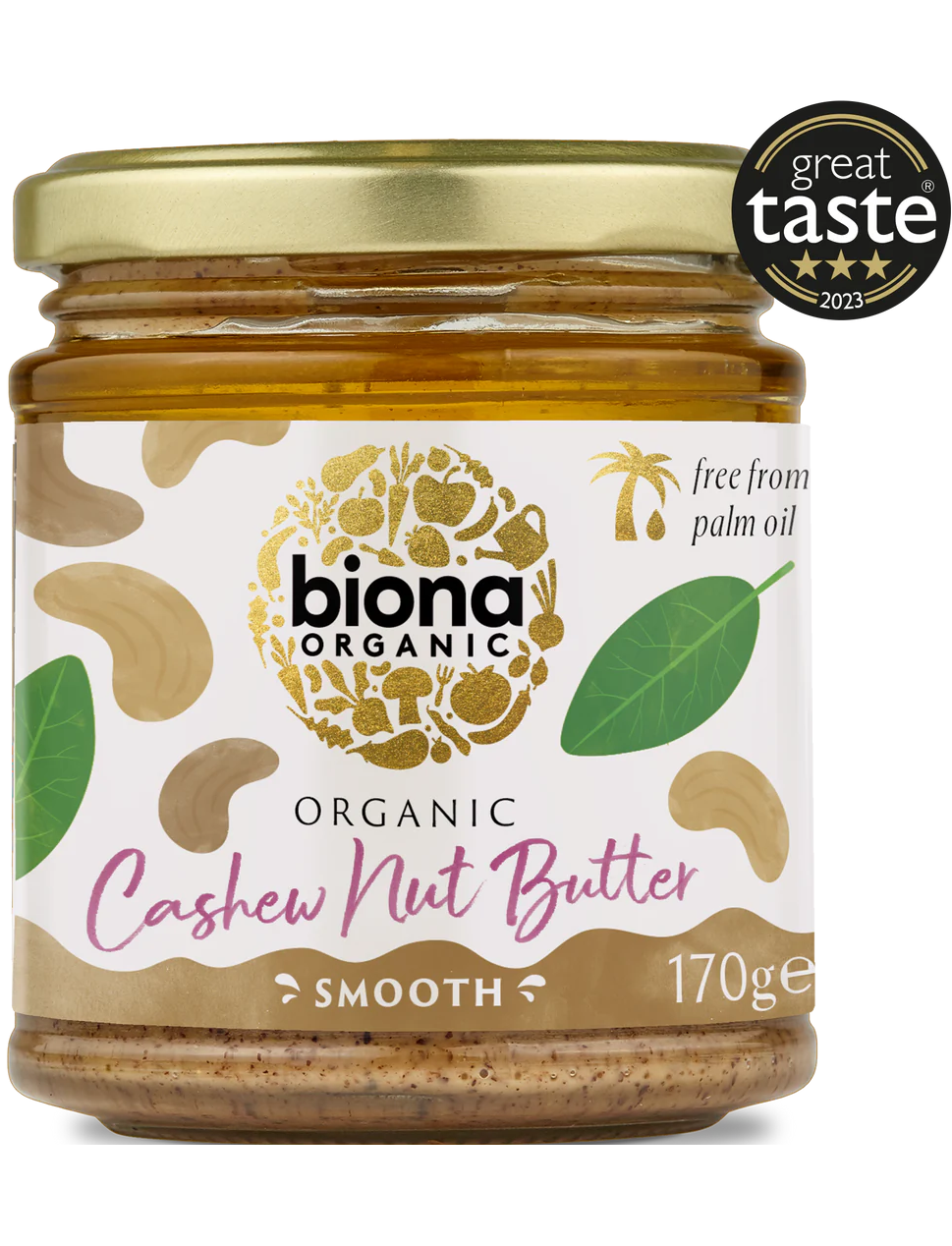 Органічне масло кеш'ю Biona виробляється з невеликих партій свіжообсмажених, сертифікованих органічних горіхів - і все! Ми не використовуємо пальмовий жир чи емульгатори, лише цілі горіхи, що означає, що ви отримуєте їх поживні якості та смак. Масло кеш’ю є, мабуть, найтемнішим з усіх горіхових масел і чудово відрізняється від арахісового чи мигдального. Його дуже смачно намазати на гарячі тости та посипати бананом для ситного початку ранку, а також чудово підійти після обіду, якщо намазати його поверх крекерів. Його характерна оксамитова консистенція творить чудеса в смузі, сирих десертах і навіть може використовуватися як заміна традиційного крему для прикраси тортів. Якщо всередині лише 100% цільні смажені горіхи кеш’ю, горіхове масло може іноді відокремлюватися, але це не впливає на якість продукту. Просто перемішайте, щоб відновити природну консистенцію, і насолоджуйтесь! Для досягнення найкращих результатів зберігайте в прохолодному сухому середовищі.