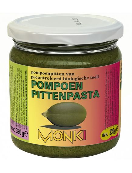 Паста з гарбузового насіння MONKI дуже смачна в хлібі, крекерах, рисових коржах і соусах. Це нормально, якщо через деякий час утворюється масляна плівка. Тоді достатньо перемішування. Склад: смажене насіння гарбуза з сертифікованого органічного вирощування, морська сіль. Може містити сліди арахісу, горіхів і кунжуту.
