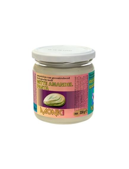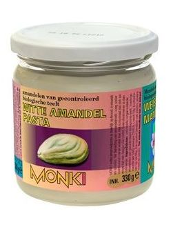 Біла мигдальна паста MONKI дуже смачна на хлібі, мюслі та салатах. Щоб приготувати мигдальне молоко: додайте воду, постійно помішуючи. Це нормально, якщо через деякий час утворюється масляна плівка. Тоді достатньо перемішування. Інгредієнти: очищений несмажений мигдаль з контрольованого органічного вирощування. Може містити сліди арахісу, інших горіхів і кунжуту.