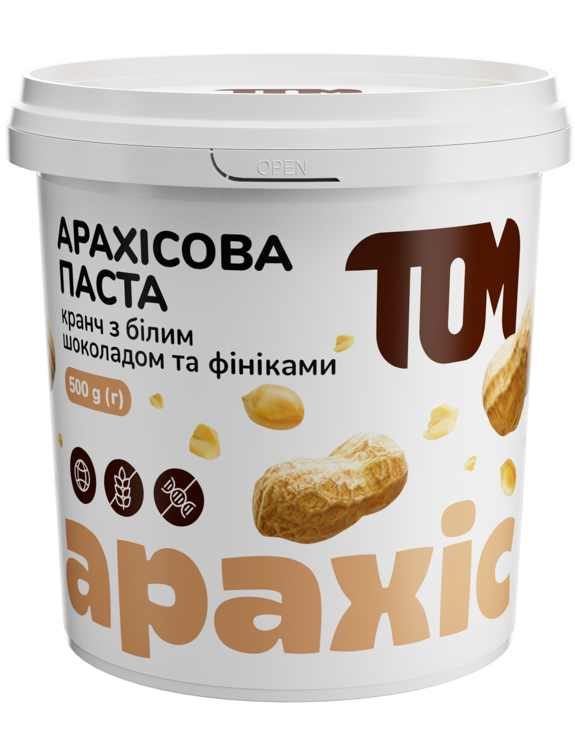 ТОМ Паста арахісова кранч з білим шоколадом і фініками 500 г