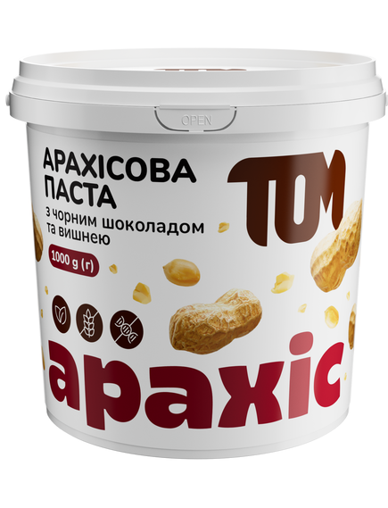 Склад: смажені ядра арахісу (87%), чорний шоколад, вишня сушена подрібнена.