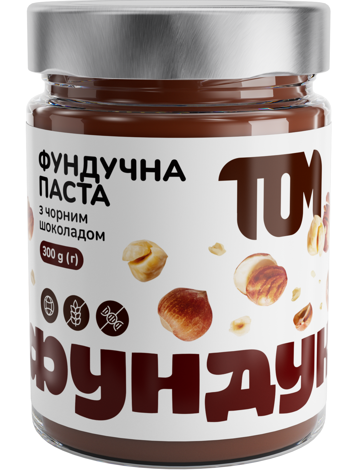Склад: смажені ядра фундука (75%), чорний шоколад, сіль. Може містити сліди арахісу.