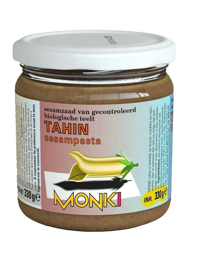 Тахіні MONKI чудово поєднується з хлібом, крекерами та рисовими коржами. Це нормально, якщо через деякий час утворюється масляна плівка. Тоді достатньо перемішування. Інгредієнти: смажене насіння кунжуту з сертифікованого органічного вирощування. Може містити сліди арахісу та горіхів.