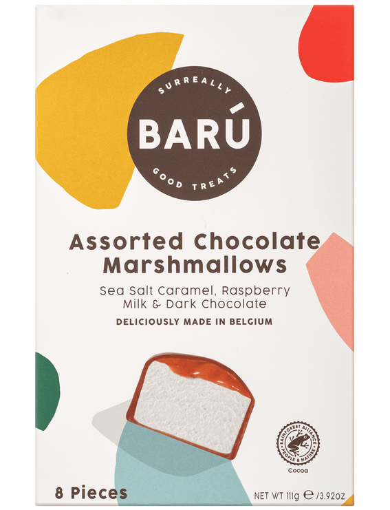 Наші коробки-асорті — чудовий спосіб відкрити для себе всі смаки. Ця коробка містить 8 окремо упакованих зефірів із 4 смаками: молочний шоколад, темний шоколад, молочний шоколад з кавою та вершками та темний шоколад із карамеллю з морською сіллю.