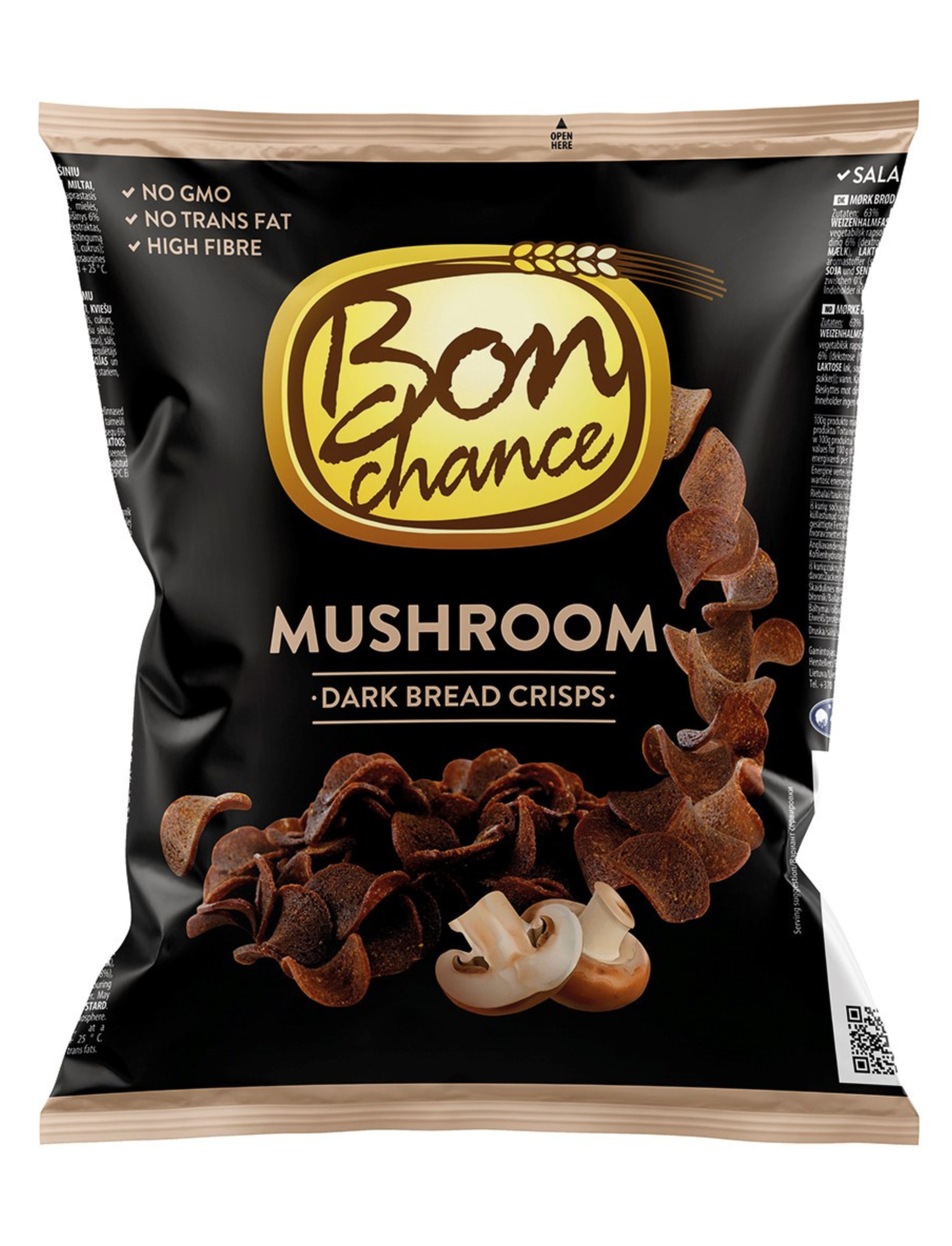 Хлібні чіпси з чорного хліба, які випікають у спеціальній формі, тонко нарізають, обсмажують на олії, приправляють сумішшю спецій. Продукт виробляється у Литві, за рецептом BP02-12. Виробник гарантує справжність товару.