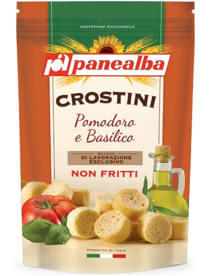 Склад: борошно пшеничне м’яке типу «0», олія оливкова 12,4%, олія пальмова, базилік 4%, дріжджі пивні, томат 2%, сіль, борошно пшеничне солодове. Він може містити насіння кунжуту та сої.
