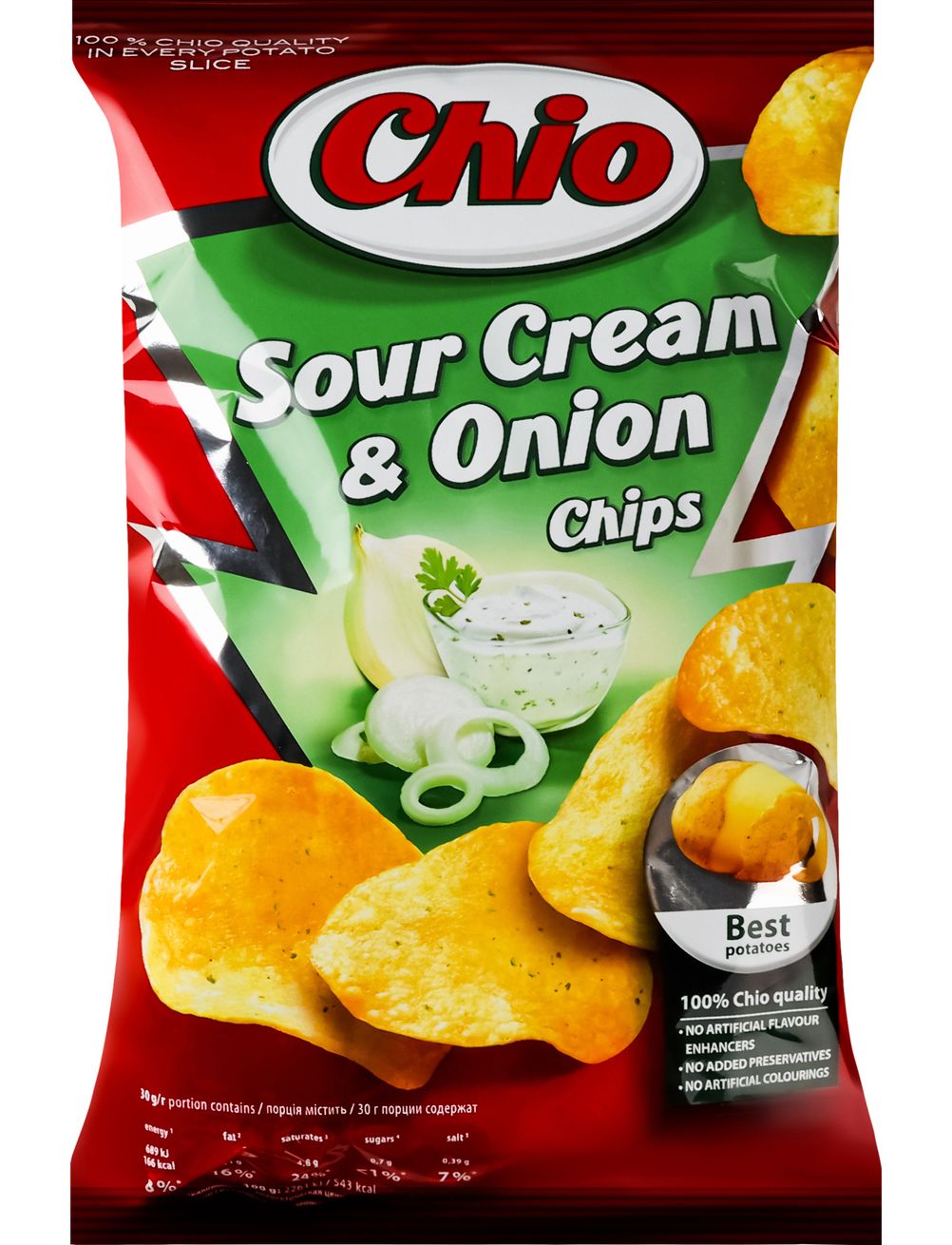 Обережно, невимовно смачно! Без штучних підсилювачів смаку, ароматизаторів та барвників. Хто не любить картоплі зі сметаною? Ми теж такої думки, тому поєднали ці смаки в наших чипсах зі смаком сметани та цибулі. Наша якість для преміум-задоволення.