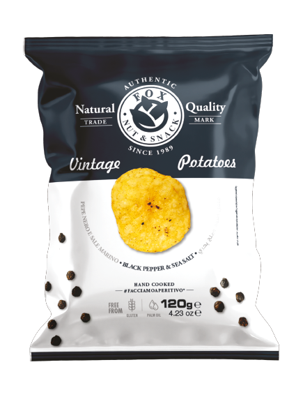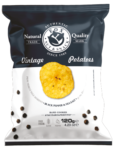 Цей продукт втілює ідеальний баланс між хрусткістю, гостротою та солоністю, створюючи незабутні смакові відчуття. Це ідеальна закуска, щоб задовольнити ваші смакові рецептори в будь-який момент. Незалежно від того, чи збираєтеся ви поділитися з друзями під час веселого вечора чи просто хочете перекусити для гурманів самостійно, чіпси з чорним перцем і морською сіллю стануть ідеальним вибором. Внесіть у своє життя нотку італійської елегантності та смаку, спробуйте зараз!