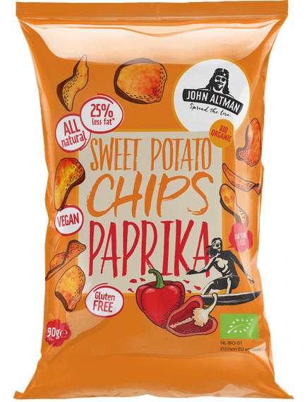 Склад: органічна солодка картопля 68%, органічна соняшникова олія 28%, приправа паприка 4%.