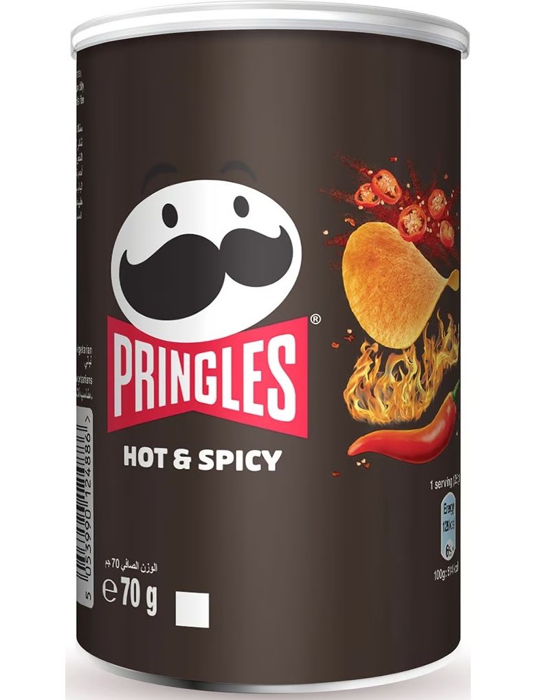 Чипси Pringles Hot&Spicy мають однакову форму. Вони складені купкою в оригінальну упаковку у формі тубуса, який щільно закривається кришкою. У такій тарі чипси не поламаються і не розкришаться. Також продукт захищений від зовнішніх природних впливів, які можуть нашкодити смаковим якостям або зіпсувати його. Головними впізнаваними ознаками снеків Pringles є форма упаковки та фірмовий логотип, який ось уже 50 років залишається незмінним.