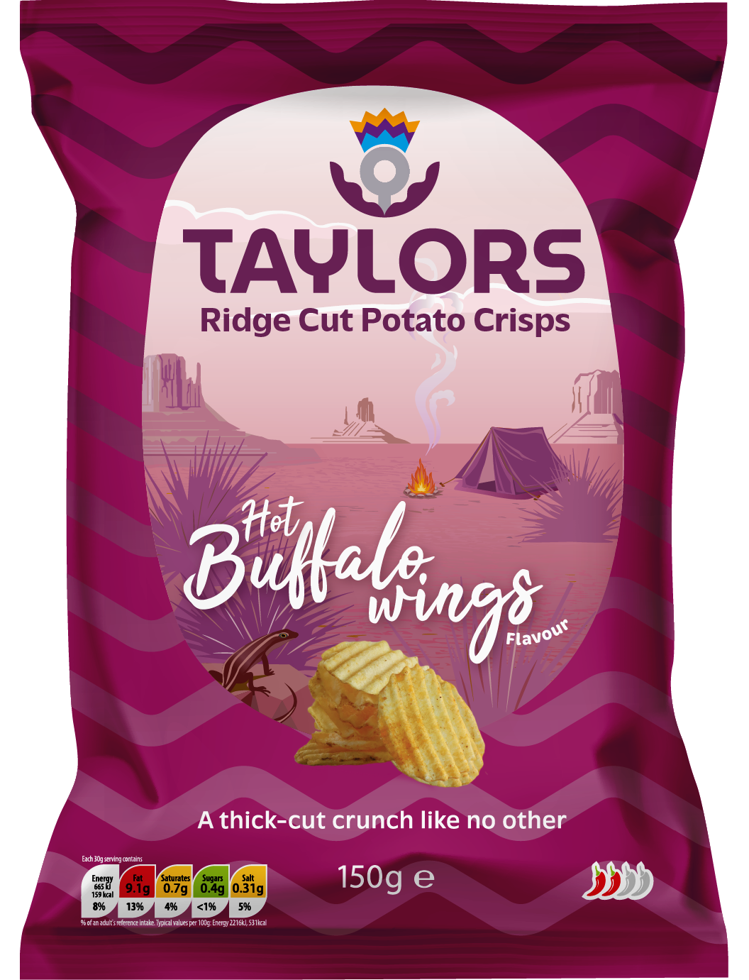 Чи літають буйволи? Це насправді не має значення. Тому що пряний, м’ясний, курячий смак наших чіпсів Hot Buffalo Ridge незабаром змусить вас запитати: «А де молоко?» У Taylors ми любимо пакувати нотку тепла в деякі з наших сумок. Це точно один з них! Напевно, не для дітей, а це більше для вас.