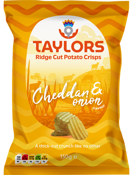 Насичений чеддер і гостра цибуля створюють потужний смаковий союз. І ми вважаємо, що досягли ідеального балансу з нашими зрілими чіпсами з чеддером і цибулею. Зрілість нашого сиру забезпечує тривалий смак. І як зірки кожного доброго обіду орача, вони знову й знову подають найкращий шматок. Не соромтеся… обійміть подих.