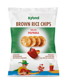 B.Yond - Болгария. Рисовые чипсы со вкусом латиноамериканской сальсы с паприкой. Созданы на основе цельного коричневого риса, специй и других ингредиентов. Обладают хрустящей текстурой и мягким вкусом с легкими пряными нотками. Идеально сочетаются с разнообразными соусами и сальсой, а также прохладительными напитками. Чипсы B.Yond станут вариантом закуски во время просмотра любимого фильма, вечеринки с настольными играми, большого праздника с друзьями, или туристической поездки. Продукт является надежным источником клетчатки. 100 г = 418 ккал. Представлен в удобной упаковке. Вес продукта - 70 г.