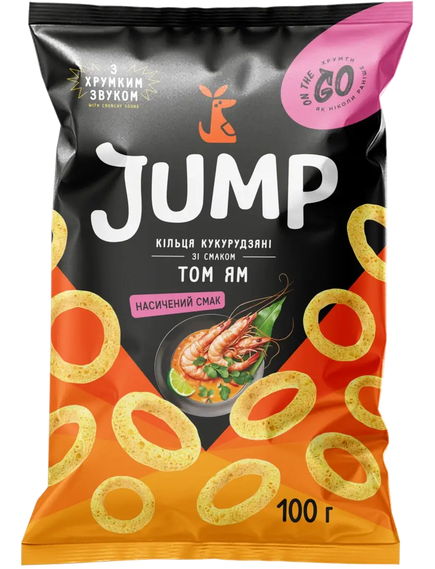 Склад: кільця кукурудзяні 74% ( крупа кукурудзяна, сіль кухонна, олія соняшникова, емульгатор соєвий лецитин) олія соняшникова високоолеїнова рафінована дезодорована виморожена з антиоксидантом Е306, суміш смакова «том ям». Ароматизатори містять ракоподібні та продукти з ракоподібних. Може містити сліди злаків, що містять глютен, арахісу, горіхів та молочних продуктів