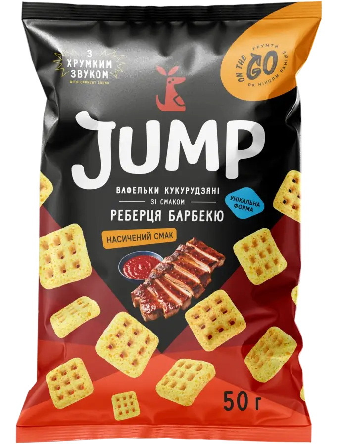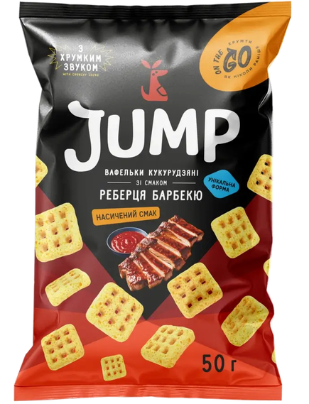 Мінімальна кількість для "Jump Снеки кукурудзяні Вафельки зі смаком Реберця Барбекю 50 г" є 5.