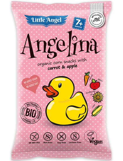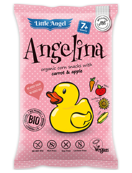 Angelina - Little Angel - это органическая закуска из экструдированной кукурузы, подходящая для детей от 7 месяцев. Снеки Little Angel изготовлены из органических ингредиентов без добавления сахара и соли, и не содержат аллергенов.