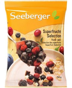 Склад: сушені ягоди та фрукти (у різних пропорціях: вишня, чорноплідна горобина, журавлина), слива сушена, цукор, сироп глюкози-фруктози, соняшникова олія, регулятор кислотності лимонна кислота, консервант сорбат калію. Сімейна компанія Seeberger (Німеччина) виробляє преміальні горіхи та...