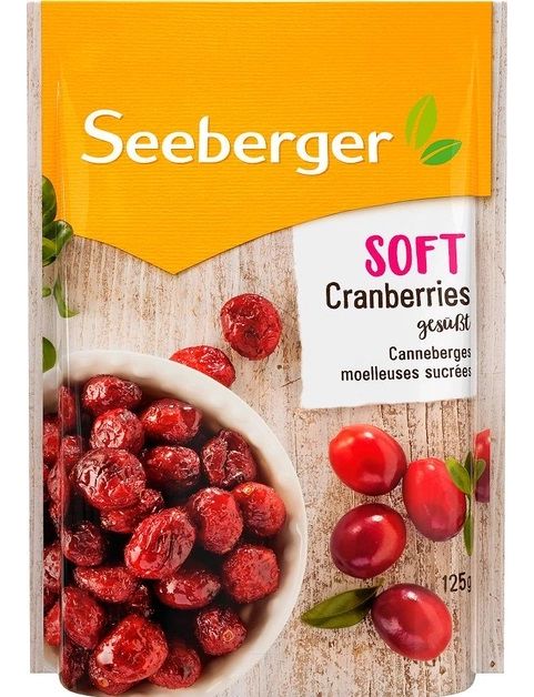 Соковита журавлина, підсолоджена цукром, стає ще смачнішою. Seeberger відбирає тільки певні сорти канадської журавлини, які неквапливо висушуються за середньої температури. Така сушена журавлина має солодкий смак і насичений ароматом.