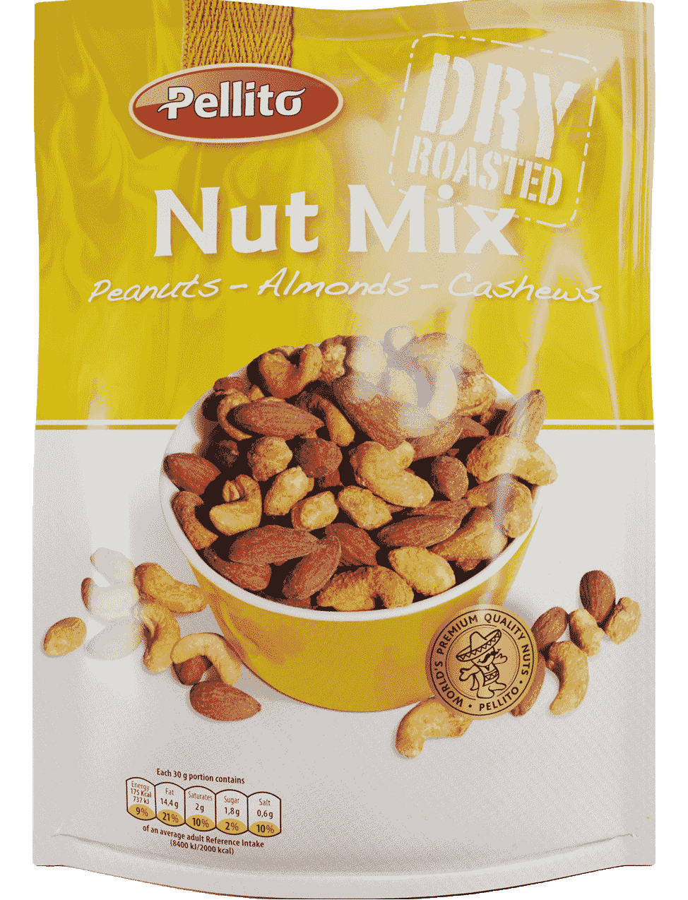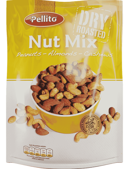 Склад: горіхи 96% (арахіс, кешью, мигдаль) у змінних пропорціях, сіль, пшеничне борошно, немодифікований кукурудзяний крохмаль, модифікований картопляний крохмаль, ароматизатори (гідролізований білок рослинної кукурудзи, ароматизатор диму), підсилювач смаку (глутамат натрію), цукор, дріжджовий екстракт, спеції 0,2% (паприка, мускатний горіх, кайєнський горіх), часниковий порошок, цибульний порошок, дріжджовий порошок, екстракт спецій (струковий перець, перець чилі), барвник (екстракт паприки), загусник (арабська камедь), кислота (лимонна кислота), декстроза ( кукурудза), карамелізований цукор.