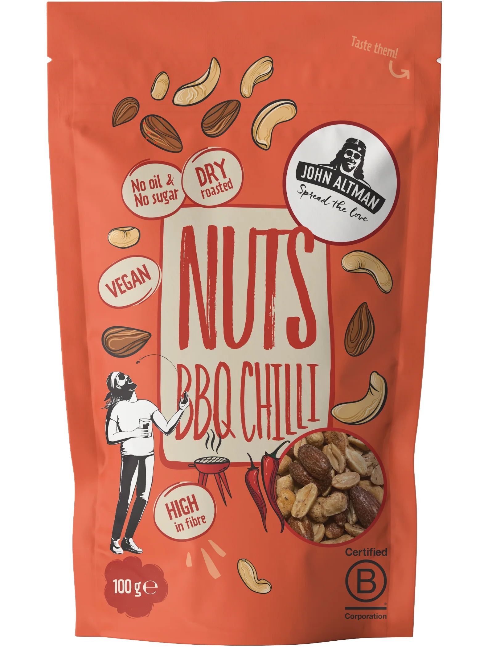 Уявіть собі смачні смажені горіхи з приправою BBQ Chili, від яких неможливо залишитися осторонь, такі смачні. Наші нові горіхи обсмажені без цукру та олії. Тож ви можете насолоджуватися ними без жодних турбот.