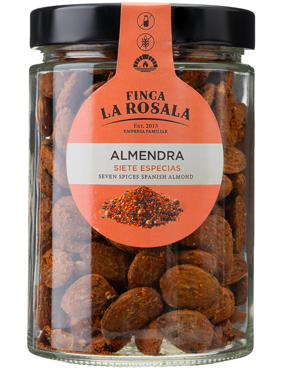 Наш мигдаль «Сім спецій» – це данина елегантності та свіжості японської кухні. Це найскладніший продукт Finca La Rosala з точки зору смаку, оскільки сім спецій поєднуються зі смаком паприки, диму, шкірки мигдалю та самого мигдалю, причому кожен мигдаль має свій неповторний нюанс.