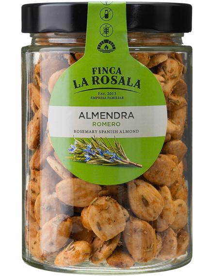 Склад: мигдаль сорту Валенсія без шкірки (94%), сіль, оливкова олія першого віджиму (1%), гуміарабік (E-414), розмарин (1%), тростинний цукор, натуральний ароматизатор розмарину та паприка La Vera.