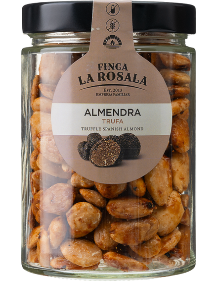 Цей сорт мигдалю "Валенсія" обсмажується вручну без шкірки з сумішшю цільного тростинного цукру, трюфеля сорту Естивум та ароматизатора трюфеля.