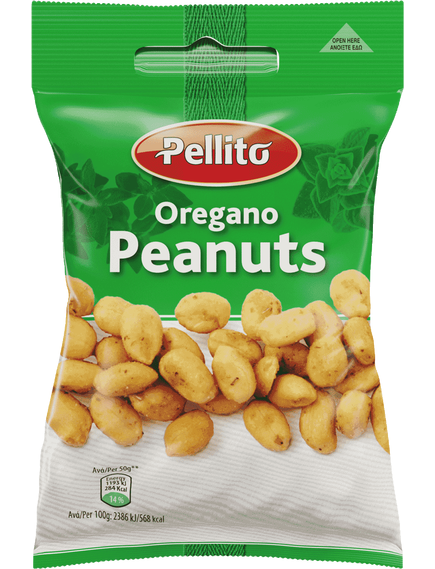 Склад: арахіс 95%, ароматизатор орегано 3% [сіль, картопляний мальтодекстрин, пшеничне борошно, кукурудзяна декстроза, цибульний порошок, трави (орегано 0,15%, петрушка), ароматизатори, дріжджовий екстракт, часниковий порошок, кислота (яблучна кислота), екстракт орегано], олія соняшникова.