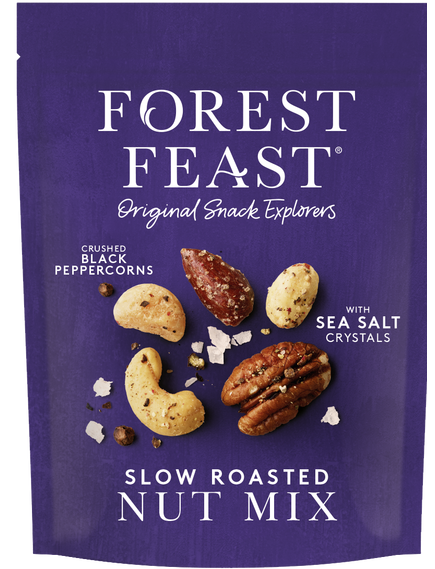 Горіхи кешью, мигдаль, макадамії, горіхи пекан і великий арахіс, повільно смажені разом із зібраною вручну морською сіллю та подрібненим чорним перцем.