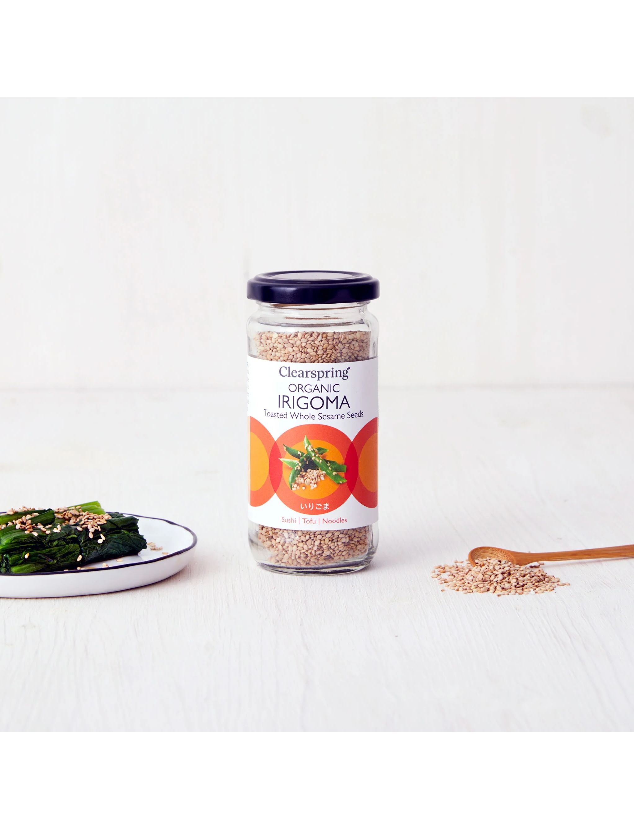 Органічний кунжут Clearspring Irigoma виготовляється з використанням найвищої якості органічного насіння кунжуту. Чорне насіння кунжуту злегка підсмажується, щоб розкрити його натуральний смак. Його виготовляють у Великій Британії невеликими партіями, щоб щоразу гарантувати ідеальний смак і якість.