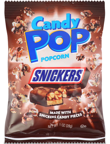 Надзвичайно солодкий попкорн Snickers з молочним шоколадом і арахісовим маслом від Candy Pop ідеально підходить для вечора кіно.