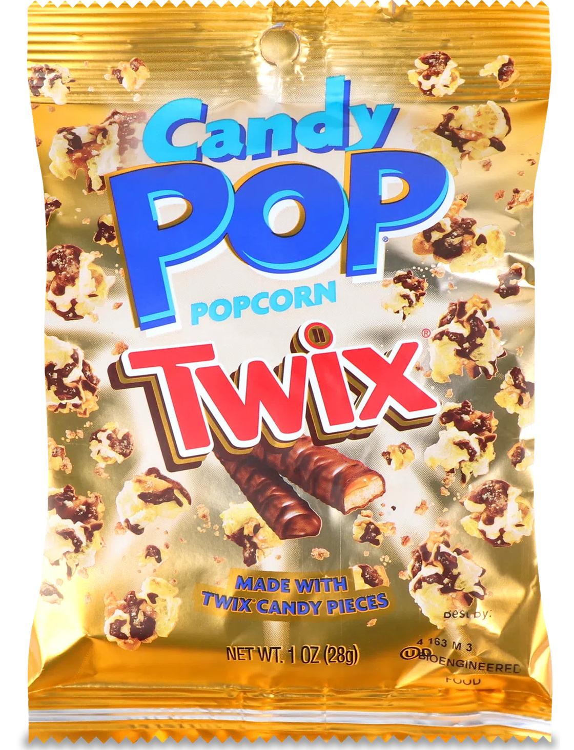 Склад: кондитерська глазур: цукор, пальмоядрова олія, сухе знежирене молоко , незбиране сухе молоко , какао-порошок, емульгатор: соєвий лецитин; сіль, натуральний ароматизатор, екстракт паприки; кукурудза, соняшникова олія, тростинний цукор, подрібнені батончики Twix: молочний шоколад: цукор, какао-масло, какао терте, сухе знежирене молоко , лактоза , молочний жир, емульгатори: соєвий лецитин, полігліцерол полірицинолеат, штучні ароматизатори; збагачене пшеничне борошно: пшеничне борошно, ніацин, відновлене залізо, тіамін, рибофлавін, фолієва кислота; цукор, пальмова олія, кукурудзяний сироп, сухе знежирене молоко , декстроза, сіль, какао-порошок, емульгатор: соєвий лецитин; крохмаль кукурудзяний модифікований, розпушувач: натрію гідрокарбонат; штучні ароматизатори.