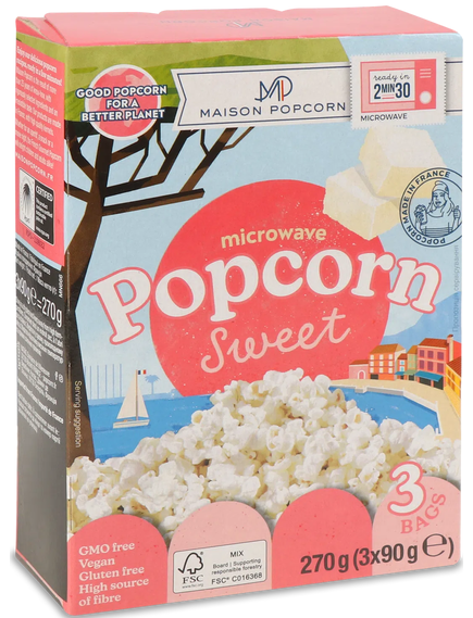 Maison Popcorn Попкорн Солодкий для мікрохвильвої печі упаковка 3шт*90 г