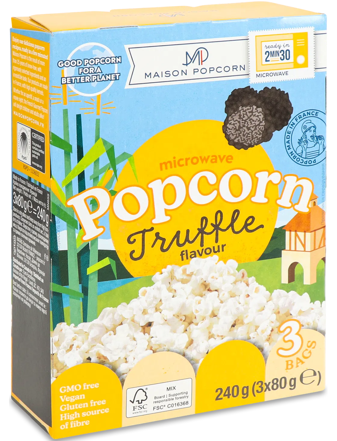 Maison Popcorn Попкорн Трюфель для мікрохвильвої печі упаковка 3шт*80 г