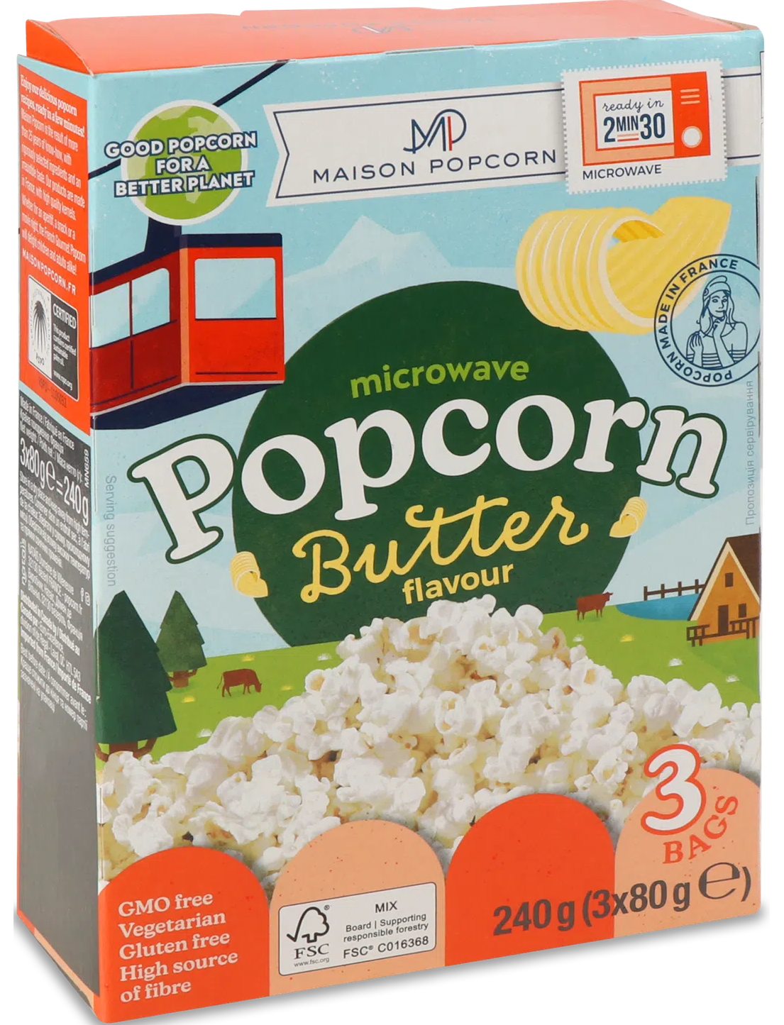 Maison Popcorn Попкорн Вершкове Масло для мікрохвильвої печі упаковка 3шт*80 г