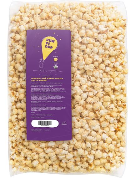 Склад: зерно кукурудзи для виготовлення попкорну, олія соняшникова, сіль морська 3%.