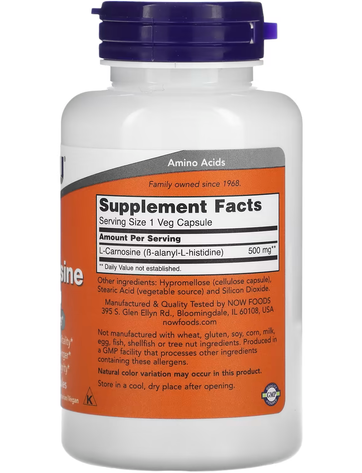 - Кількість в 1 порції: L-карнозин (B-аланіл-L-гістидин) 500 мг