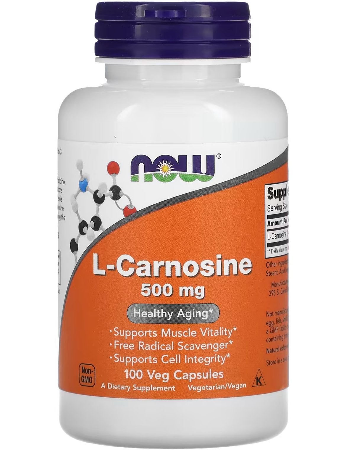 L-карнозин (бета-аланіл-L-гістидин) — це дипептид, що складається з аланіну та гістидину. У природі він міститься у високій концентрації в м’язах та нервових тканинах, і, як відомо, його рівень знижується з віком. L-карнозин захищає клітинні та тканинні структури в процесі старіння завдяки своїм функціям нейтралізації вільних радикалів та стабілізації мембран.