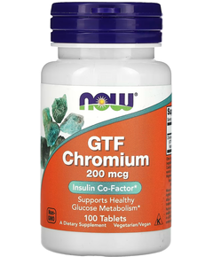 Харчова добавка. Дієтична добавка. GTF Хром ФТГ 200 мкг 100 веганських таблеток. Хром ФТГ від NOW® — біоактивна форма хелату хрому, відома як гліцинат нікотинат хрому. Цю форму також називають «фактором толерантності до глюкози» (ФТГ), оскільки вона найбільш схожа на форму, яка...