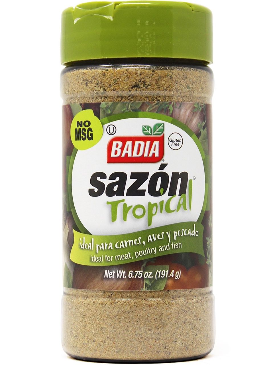 Додайте до свого улюбленого рецепту 1 чайну ложку Badia Sazón Tropical® на кожні 1/2 фунта яловичини, птиці, риби або морепродуктів.