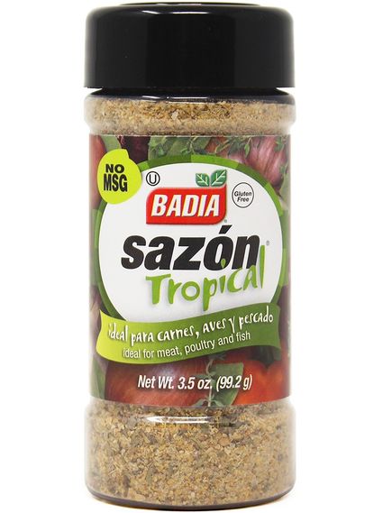 Додайте до свого улюбленого рецепту 1 чайну ложку Badia Sazón Tropical® на кожні 1/2 фунта яловичини, птиці, риби або морепродуктів.